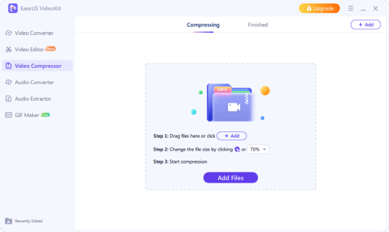 At this time, what you need is a free video compressor to reduce video file size quickly. The video compressor for Discord is built in EaseUS VideoKit to compress any video losslessly, make video clips more easier to store, and more sharable on YouTube, WhatsApp, Facebook, or Twitter.